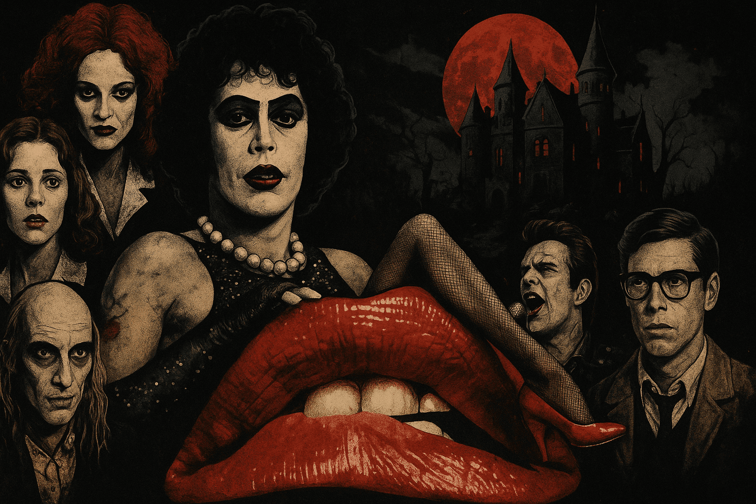 The Rocky Horror Picture Show (a.k.a. RHPS, Rocky Horror, or just “Rocky”) is a film based on a musical made in the early 1970s in England. A campy parody of B-sci-fi and horror flicks from the 40s–60s, it follows a sweet Middle-American couple (Brad & Janet) who stumble into an alien convention led by a flamboyant, cross-dressing doctor with Frankenstein-esque ambitions. The film flopped at release—but at midnight screenings, audiences gave it new life. The rest is history.